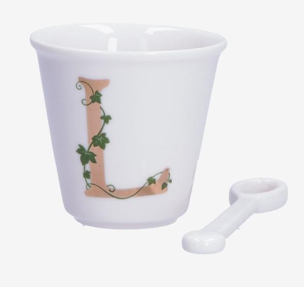 BICCHIERINO UNICO LETTERA 'L' CON CUCCHIAINO 75CC GIFT BOX