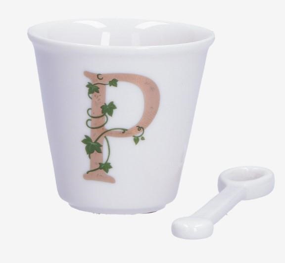 BICCHIERINO UNICO LETTERA 'P' CON CUCCHIAINO 75CC GIFT BOX