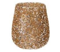PORTA CANDELA VETRO PERLE ORO 13CM