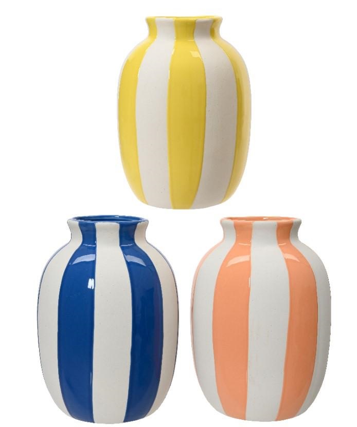 POT DOLOMITE VASE STRIPE 3COL ASS ASSORTED DIA13.5CM X ALT.2