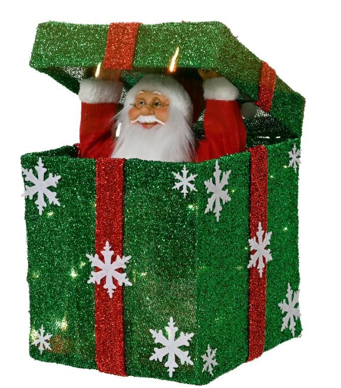 SCATOLA SANTA CLAUS LED BATTERIA NDOOR CM25X25X50H GREEN/RED