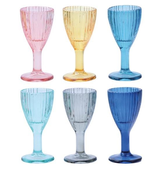 SET 6 PZ LIQUORINO SHOT PLISSE' VETRO COLORATI CM.D5X10,5H