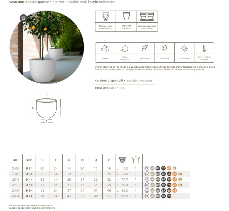 VASO DA ESTERNO IN RESINA TONDO ETRIA NERO CM. Ø54 H44